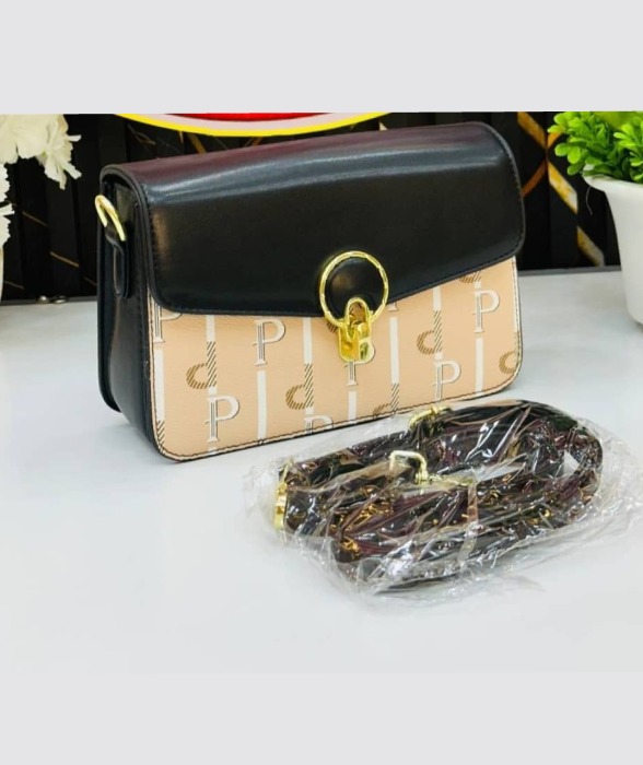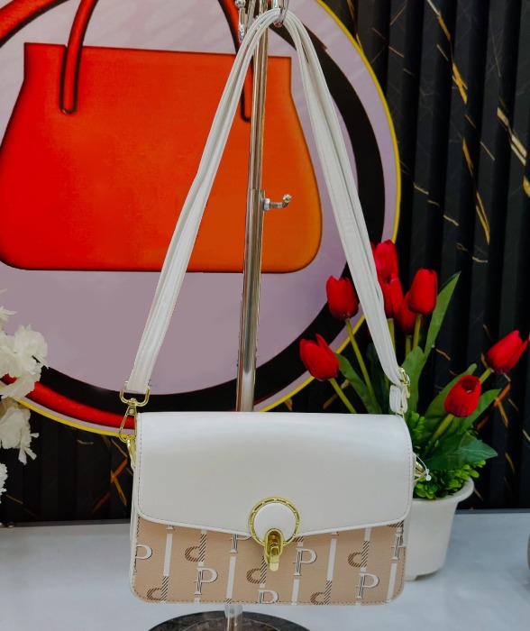 Sac à main moderne avec rabat lisse et base imprimée du motif P-Design. Orné d’une boucle ronde métallique dorée, il associe élégance et praticité. Sa bandoulière réglable permet un porté épaule ou croisé.